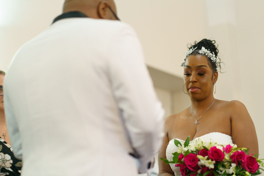After their first look, Katrina and Lay exchanged vows surrounded by their loved ones. The DoubleTree Annapolis wedding venue offered a spacious ceremony area, beautifully decorated with flowers that reflected their style. The natural light streaming through the windows made the setting feel warm and inviting.